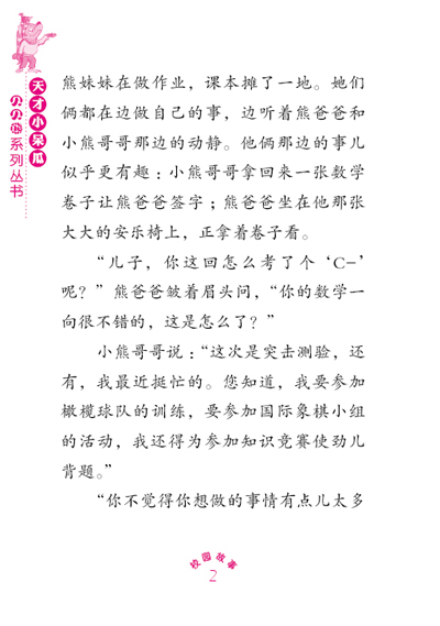 本系列书中的所有故事,都是以“贝迷”所熟悉的小熊哥哥、小熊妹妹、大高个、奎妮和熊王国的其他小熊们为土角,以他们的成长经历和体验为线索,展现了多姿多彩、充满乐趣的校园生活,读起来十分过瘾,赶快翻开书页,和小熊哥哥他们一起,去经历那些妙趣横生的事吧
