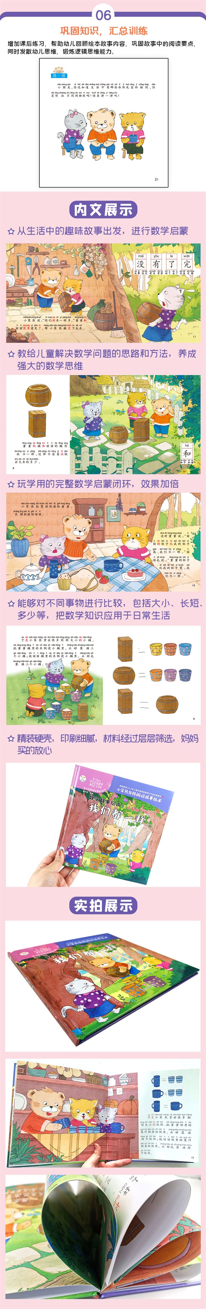 本套书有20个主题故事,内容深刻,关注儿童心灵成长;故事内容积极,情感向上,正确引导幼儿健康成长;教育方面广、全面综合培养孩子各方面能力发展;文字量逐级递增,句式、句法符合《3-8岁儿童分级阅读指导》行业标准要求;全方位轻松教会儿童怎么读;精准锁定高频字,让识字更有意义;巩固知识,汇总练习。