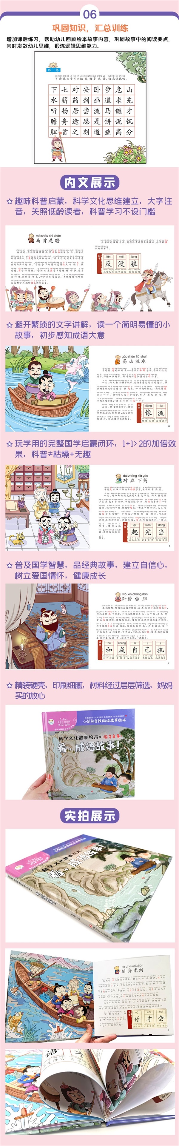 本套书有20个主题故事,内容深刻,关注儿童心灵成长;故事内容积极,情感向上,正确引导幼儿健康成长;教育方面广、全面综合培养孩子各方面能力发展;文字量逐级递增,句式、句法符合《3-8岁儿童分级阅读指导》行业标准要求;全方位轻松教会儿童怎么读;精准锁定高频字,让识字更有意义;巩固知识,汇总练习。