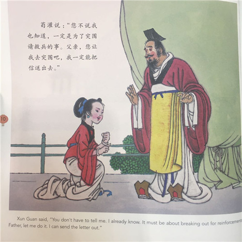 《荀灌讨救兵》系杨永青先生绘画作品,原名《荀灌讨救兵》,由中国少年儿童出版社初版于1993年。故事讲的是:晋朝时期,荀崧镇守的宛城被杜曾率军包围。城中粮食所剩不多,难以长期坚守,情况非常危急。荀崧十三岁的女儿荀灌挺身而出,带领十几名勇士翻城墙而出,趁夜突围,赶赴至襄城石览将军处求得救兵,解除了宛城之围,推动战争取得了胜利。荀灌凭借智谋与胆识,成为了人们心中的小英雄。