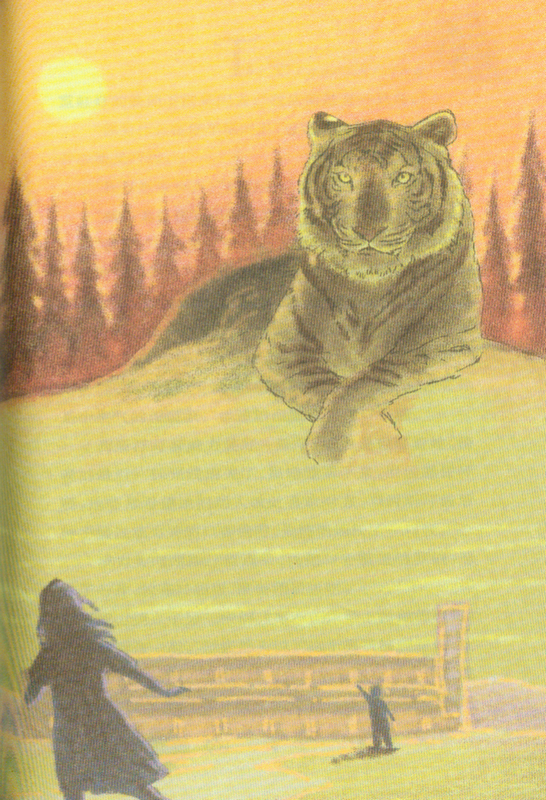 那时是清晨,雾笼罩着大地,看起来可能会下雨。近两个星期以来差不多每天都下雨。天空灰灰的,空气浓浊又凝滞。对罗伯来说,这只老虎看起来像是从雾中升起的魔术。他太意外自己的发现了,惊愕得定定站着凝视。但只看了一分钟,他就转身跑出森林,朝着“肯塔基之星”方向跑去。他怕注视老虎的时间太长,老虎会就此消失。回家的路上,他的脑海里一直在质疑他所看到的,但怦怦作响的心却告诉他,那是真的,没错。老虎,老虎,老虎。