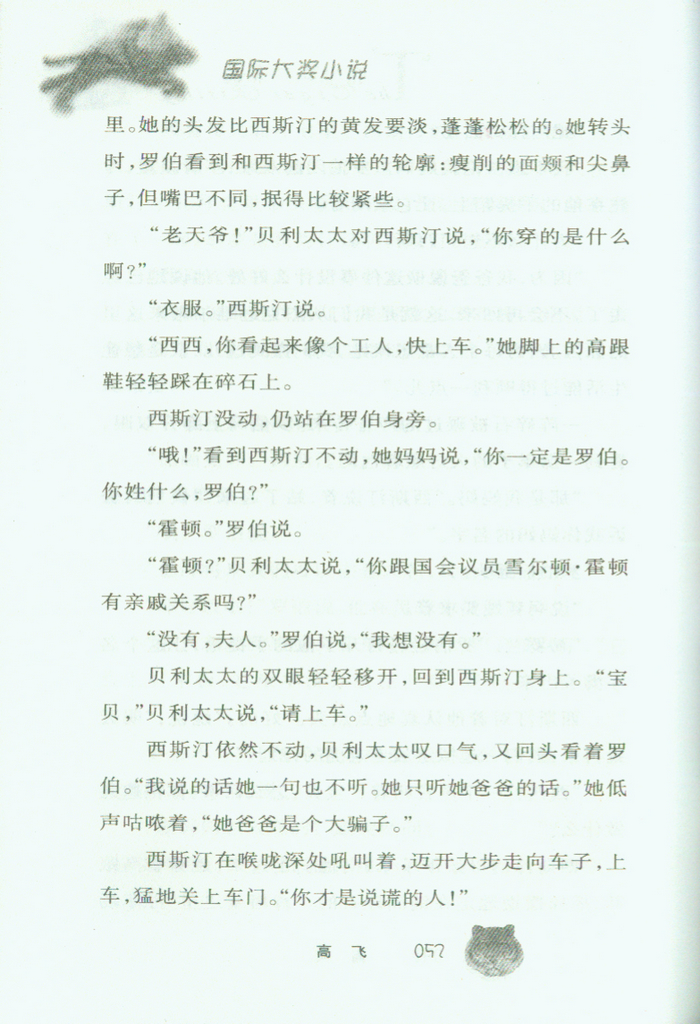 许多作家对自己生长的地方会有莫名的爱恋感,作品中常融入这种恋乡情结,作为主要背景,因为对最熟悉的地方所滋生的情感往往最珍贵,也最真实。凯特?迪卡米洛也不例外,她的成名作品《傻狗温迪客》的背景是她成长时住过的佛罗里达州,这本《高飞》写的也是这个气候温和、到处都是棕榈树的南方大州的故事。主角罗伯有如《傻狗温迪客》的欧宝,失去母亲后,变得孤单、自我封闭,但经过一些切身之事的冲击,最后勇敢敞开心胸,重新接纳亲情的抚慰和友谊的关怀。