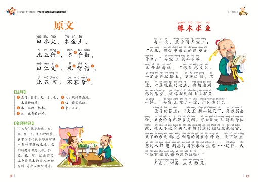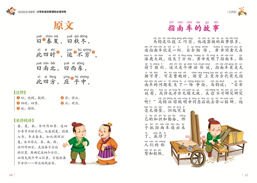 《三字经》是我国古代优秀的儿童启蒙读物,流传广泛,家喻户晓。它代表了中国古代儿童启蒙读物的最高水平。《三字经》中包含了各类知识。它可以分为六个部分。“人之初,性本善”到“人不学,不知义”,讲的是教育和学习对儿童成长的重要性;“为人子,方少时”至“首孝悌,次见闻”强调儿童要懂礼仪、孝敬父母、尊敬兄长;“知某数,识某文”到“此十义,人所同”介绍生活中的一些名物常识;“凡训蒙,须讲究”到“文中子,及老庄”介绍中国古代的重要典籍;“经子通,读诸史”到“通古今,若亲目”讲从伏羲神农至清代的朝代变革;“口而诵,心而惟”到“戒之哉,宜勉力”强调学习勤奋刻苦,长大有所作为。《三字经》产生了广泛影响。有许多仿它而写的著作。1727年,《三字经》被译成俄文,流传到俄国。它还被翻译成其他多种文字。