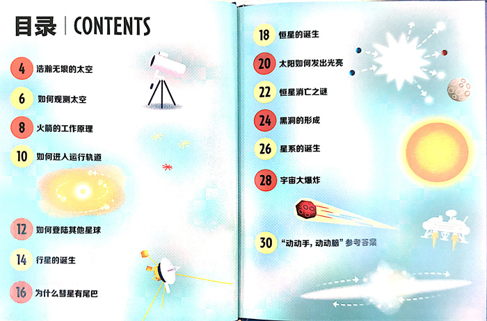 《浩瀚无垠的太空》使用精致的信息图,探索太空的奥妙:彗星如何长出彗尾、恒星的死亡过程与星系的诞生过程等。本书将带读者一起探讨星星是如何生成、黑洞如何存在、太阳如何发光。一步一步研究信息图的艺术和有趣的自然现象,揭开有关宇宙的复杂真相。同时,试着去挑战每一页令人费解的问题。