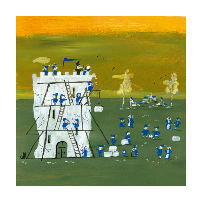 从前有一个国王,他整天都觉得很无聊,做什么事情都提不起兴趣来。有天他遇到一个号称什么毛病都能治好的巫师,问他该怎么办。巫师说,“只要打一场仗就行。”于是国王命令他的人民:拆掉房子来建碉堡,砍倒果树削成矛……大家都说,“打仗这个主意真可笑”,可是直到最后国王才醒悟过来……