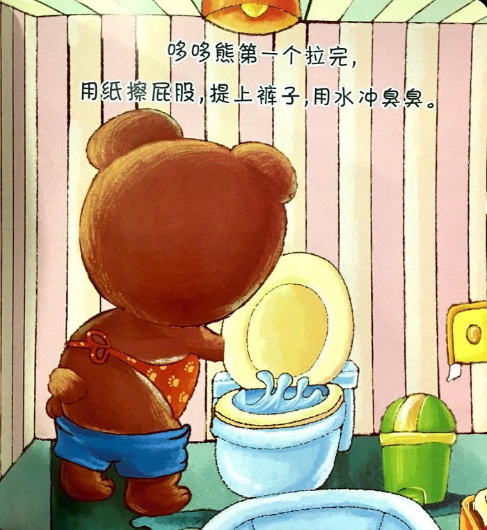 我要拉臭臭:哆哆熊冲进了*个厕所门,哈哈狗冲进了第二个,丁丁鼠冲进了第三个。