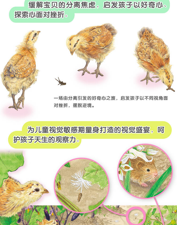 2、科普级手绘捕捉自然生命的成长瞬间,引领孩子发现无处不在的关怀与爱。