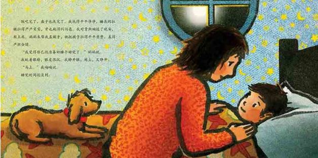 卡斯提罗的图画所特有的暖色和坚实的黑色轮廓,显示出一种安全感,格拉芙用一个轻柔的故事让传统的睡前时光变得很不一样,它描绘出了一对照顾孩子上床睡觉的父母,让日常的睡前时光变得富有魅力。