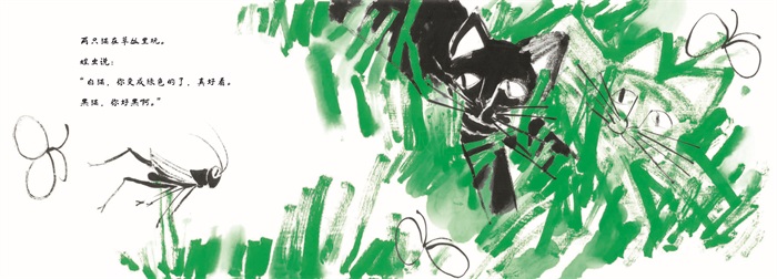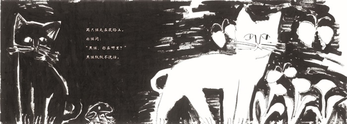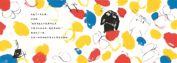 通过水墨笔触、鲜明的色彩、艺术的画面,本书讲述了白猫和黑猫这一对好朋友的温暖故事。白猫总是很受欢迎,还能变成青草的颜色、晚霞的颜色……黑猫却总是黑黑的,也不受欢迎。有一天,黑猫沮丧又落寞地跑走了。白猫一路轻轻地跟在后面,追到一片花丛时,白猫告诉黑猫,那么多美丽的花朵,显眼的就是黑猫。黑猫从此懂得了珍惜自己的黑,自豪地说出:“我是黑猫!”白猫和黑猫一直在一起。