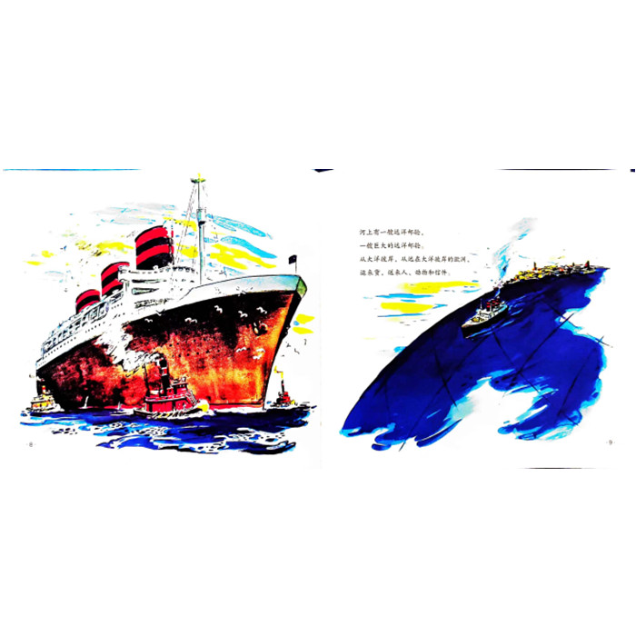 这本书描绘了一条穿过城市的河流忙忙碌碌的一天,从早晨到傍晚,数十种船舶汇聚于此,有载人的渡船,庞大的桨轮船,硕大的远洋油轮,忙碌的拖船,飞驰的摩托艇、独特的帆船、小巧的皮划艇、货轮、神奇的潜艇、壮观的军舰和潇洒的海军等等。你来我往,热热闹闹。 到了傍晚,灰蒙蒙的天气,船只渐渐模糊,各种船只收工、停靠时发出的呜呜或者嘟嘟的声音,等到夜幕降临,船只亮起了灯,在波光粼粼的水面上散发着光彩,仿佛是慰藉辛劳一天的船只和船上的人们。 插图采用写实的创作手法,如实描绘了船舶的外形、河流脉络、城市与山川交融,既有宏观的视野又有细节描绘;清新的颜色,平和的色调,将孩子们带入画家创作的美好世界,激发审美情感。 这本书的语言,抛弃了平铺直叙,也放弃了故事性的连荡起伏,而是采用精炼的文字,诗歌般的语言描述,“逆流而上”“顺流而下”,寥寥数笔,刻画出船只行进时的姿态,使图画和文字达到的水乳交融的状态,仿佛看到了迎风行驶的船和激起的浪花,让小朋友感受到语言和图画结合的美,激发了审美情感,引起对美好生活的向往。 这本书想要传达的生活方式,是一种忙碌又充实,有条不紊的生活状态,在工业文明的社会里,人们的生活变得便捷,对于未来充满希望和喜悦,一种积极阳光的精神力量油然而生。希望在静谧的夜晚,这本书可以激发您和孩子对于美好生活的向往。