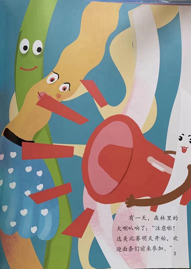 有一天,森林里的大喇叭响了:“注意啦!选美比赛明天开始,欢迎面条们前来参加。