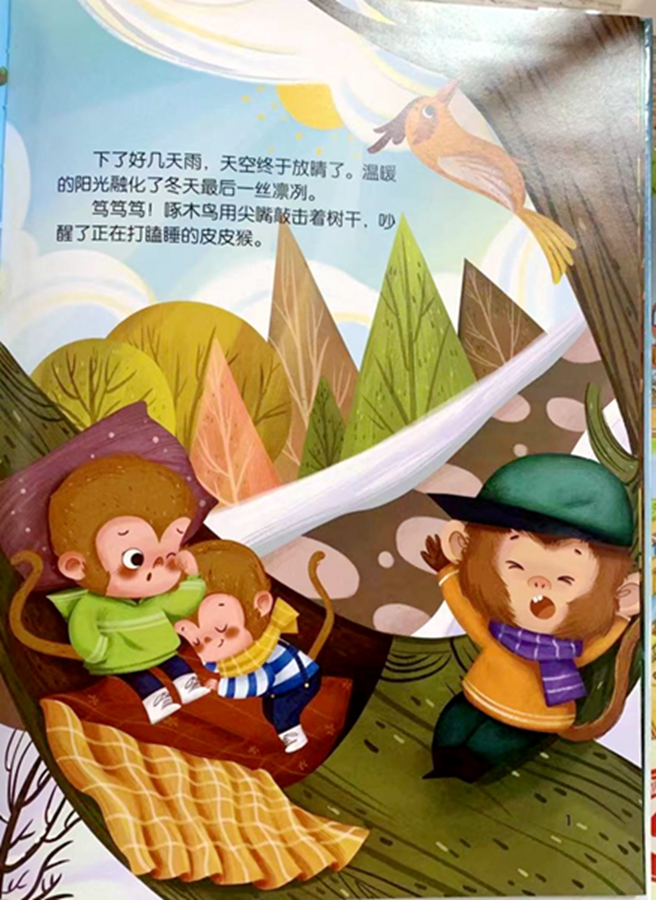 下了好几天雨,天空终于放睛了。温暖的阳光融化了冬天最后一丝凛冽。 森林在 笃笃笃!啄木鸟用尖嘴敲击着树干,吵 醒了正在打瞌睡的皮皮猴。