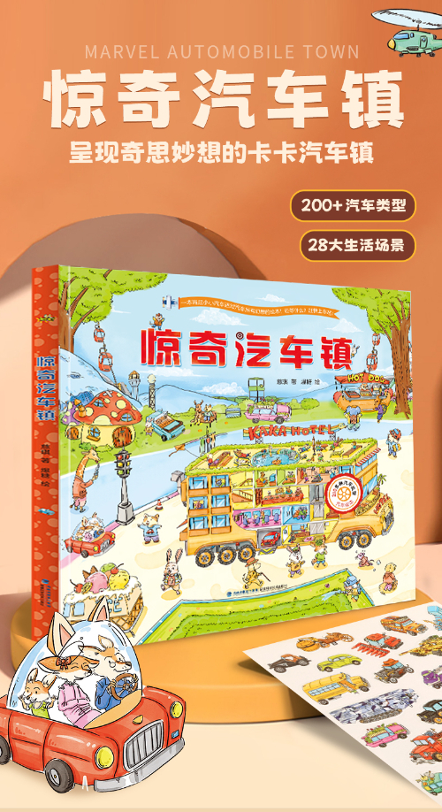 ★男孩女孩都无法拒绝的萌趣汽车图画书 男孩女孩们的玩具箱里一定会有一辆小汽车,这是孩子们与生俱来的天性和探索欲。本册图书小汽车和动物们一起生活在有温度的惊奇汽车镇,萌趣的画风和对话赋予汽车生命,吸引孩子阅读兴趣;汽车和动物们的互帮互助体现人文友爱;兼具科普性和游戏性的图画书,带领孩子发现更多的故事与温情。 ★会说话的汽车们保护孩子们的童心童趣 200多种汽车一起生活在热热闹闹的汽车镇,这里的汽车们有着鲜明的个性和表情。乐于助人的警车、暴躁的胡萝卜运输车,调皮的小火车……和镇子上的动物们一起快乐的生活着。阅读这本图书小朋友们可以最大限度的发挥想象力,和主人公麦吉一起畅游好玩的汽车镇,保持孩子的童心童趣,每一次的阅读都能发现新的惊喜。