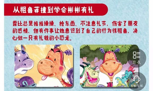 这是一套关于儿童情绪管理与性格培养的绘本,共包含四册,一册一个主题,通过四只小恐龙之间妙趣横生的故事,探讨了礼貌和行为的重要价值。《和无礼说再见》讲述的是粗鲁的露比的故事,她爱推推搡搡,总是不顾及其他恐龙的感受,最后她能意识到自己的鲁莽,做个有礼貌的恐龙吗?《谁来指挥比赛》讲述的是布兰登总喜欢号令别人,想让朋友们什么事情都听他指挥,要举行恐龙本领大比拼了,伙伴们都在练习比赛技术,这一次布兰登能明白指手画脚不会让事情变得更好吗?《嘘,安静点》讲述的是一只爱吵闹的恐龙诺亚的故事,他总是大声说话、跺着脚走路,总是喜欢打断别人,听故事的时候也不安静,最后他能意识到自己的问题吗?这是一套关于儿童情绪管理与性格培养的绘本,共包含四册,一册一个主题,通过四只小恐龙之间妙趣横生的故事,探讨了礼貌和行为的重要价值。《和无礼说再见》讲述的是粗鲁的露比的故事,她爱推推搡搡,总是不顾及其他恐龙的感受,最后她能意识到自己的鲁莽,做个有礼貌的恐龙吗?《谁来指挥比赛》讲述的是布兰登总喜欢号令别人,想让朋友们什么事情都听他指挥,要举行恐龙本领大比拼了,伙伴们都在练习比赛技术,这一次布兰登能明白指手画脚不会让事情变得更