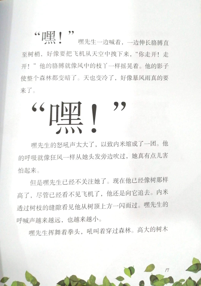 一次奇幻的森林之旅一个充满幻想与哲思的精彩童话德国青少年文学研究院 推荐阅读如果有一天,森林不见了,蝴蝶、蛾子、小鸟……都消失了,我们的家园会怎样?一个寻常的早上,女孩内米听到森林里传来一声响亮的招呼声:“嘿!”内米循声前往,遇到了一个长着树叶胡须、木头皮肤的神奇精灵。他对内米的到来非常吃惊,既想躲着内米,又似乎想与她交朋友。内米发现小精灵的身形时常变化:愤怒时会很大,沮丧时又会小到快要消失。 他是谁?为什么他会有无尽的愤怒和痛苦?内米开始搜集这片森林中花草树木的名字,寻找森林中的秘密。