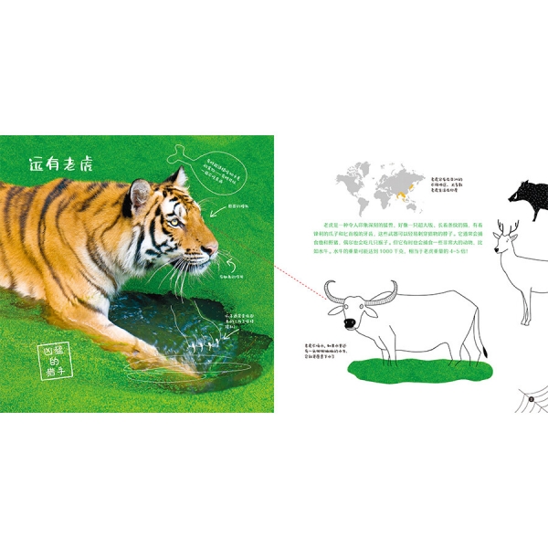 本书是一本面向6~9岁孩子的科普图文书。动物世界中会发生什么样的故事呢?眼镜蛇?毒蛇?这本书将野外的动物与生活中常见的动物作了对比。很多人觉得自然单调而乏味。这本书会带你去非洲,或北极,去看看那些刺激的动物。如果你到大自然中去,用心地观察你的周围, 你会发现老虎、企鹅、变色龙不为人知的一面。