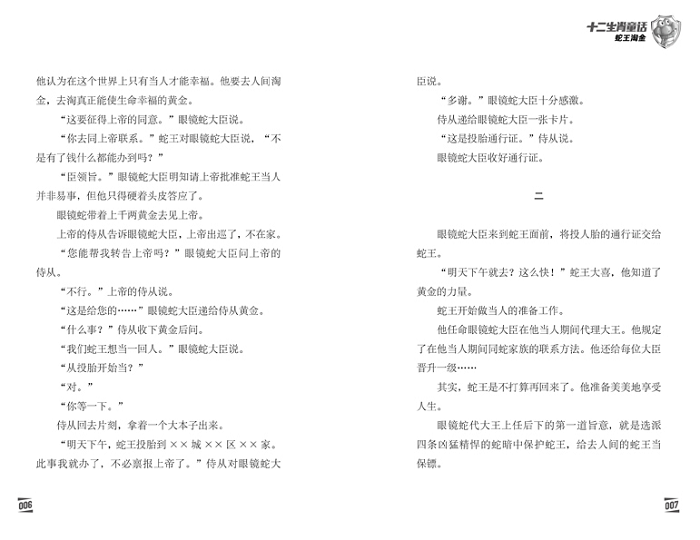 拥有什么才能有“好心情”?蛇王的大臣们觉得越有钱心情越好,蛇王却认为当人能心情更好,于是大臣们用金子帮他变成了小男孩儿阿奔,阿奔做了很多让人意想不到的事,*后成为了“世界名人”,使他的家长们感到快乐幸福,可是他自己心情却从来没好过。后来他还认识了皮皮鲁并与他成为了朋友,和他一起为全世界的孩子们造了一座超级童话城。