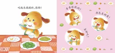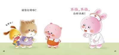 书中包含了4个故事,从吃饭、睡觉、洗澡等幼儿熟悉的生活事例入手,采用巧妙的方式,描述了一个个有趣的小故事。故事中将孩子不喜欢的事物变成他们感兴趣的事物,如把煎鸡蛋比喻成一朵朵的白云,把西蓝花比喻成一朵朵的绿色小伞,把打针的感觉形容成被蚊子叮了一下,引导他们一步步地尝试,直到孩子乐于接受。这种润物细无声的引导方式,无疑是最有效的。