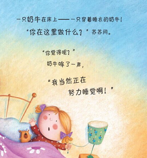 《苏苏睡自己的床》讲述,苏苏准备好上床睡觉了,可一头奶牛、一匹马、一只绵羊和一只山羊睡在苏苏床上,它们在苏苏的床上抢夺着地盘,苏苏还能睡得着吗?她的小伙伴们还能好好睡觉吗?
