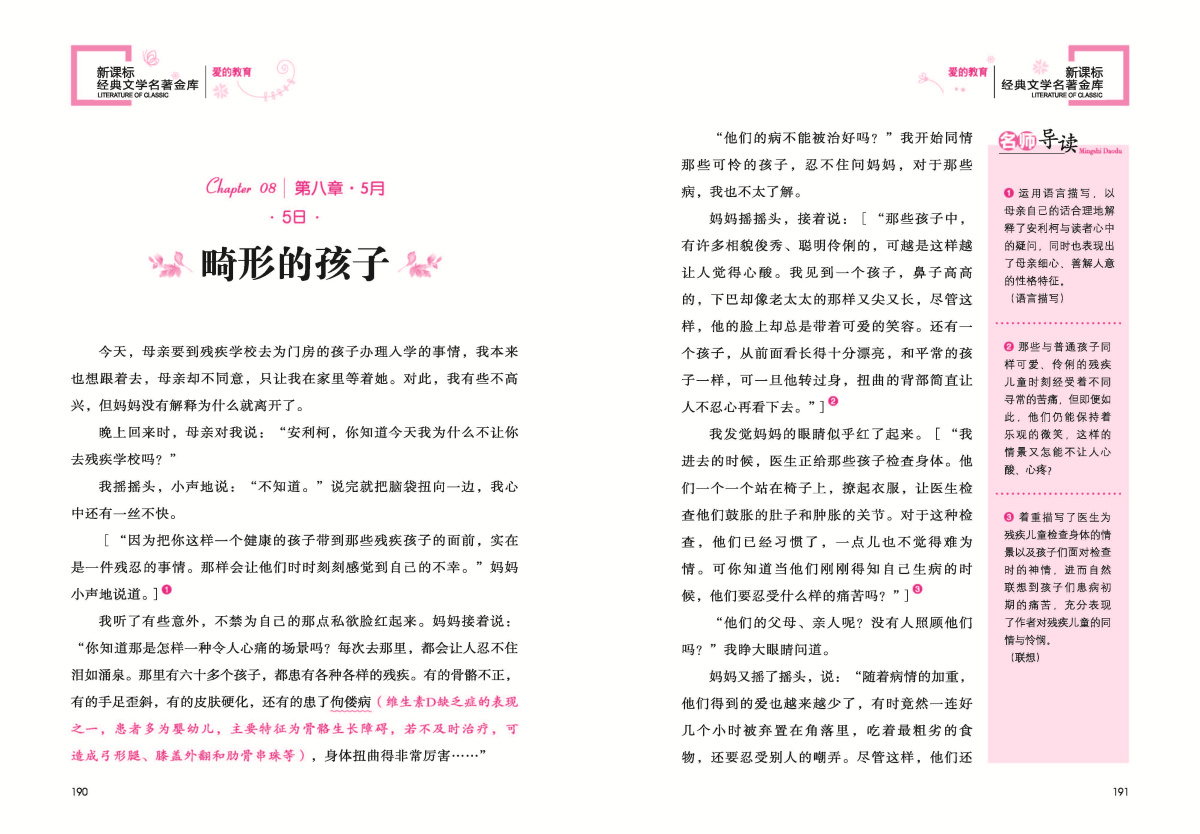 除此之外,原著中还设置了一个特殊的单元—“每月故事”,以一个个完整感人的故事对家国情怀以及人间真爱做了最好的诠释,读起来感人肺腑,发人深思!