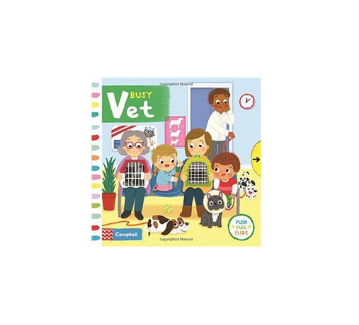 There's so much to see and do in the Busy Bookshop! Children can join in by pushing, pulling and turning the tabs to bring the shop to life. Spin the wheel to change the pictures in a book, pull the tab to make a dinosaur pop up and help the author turn the pages as he reads.