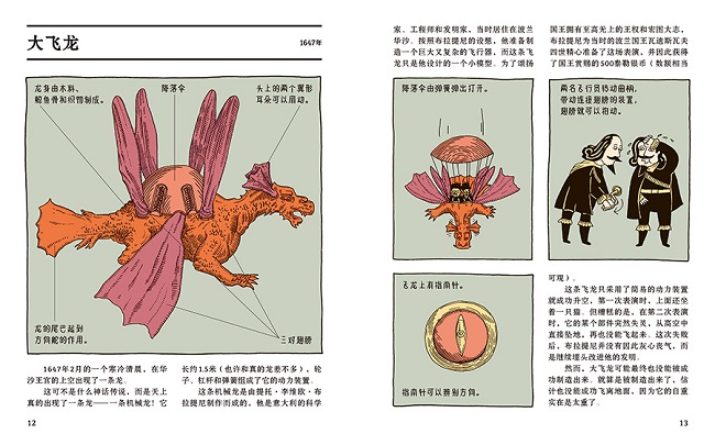 《不可思议的发明》延续了波兰作者一贯的手绘风格,生动地介绍和描绘了人类历史上一些非常有趣的发明创造,有些虽然并不实用或并未成功,但却充满了大胆的创意。