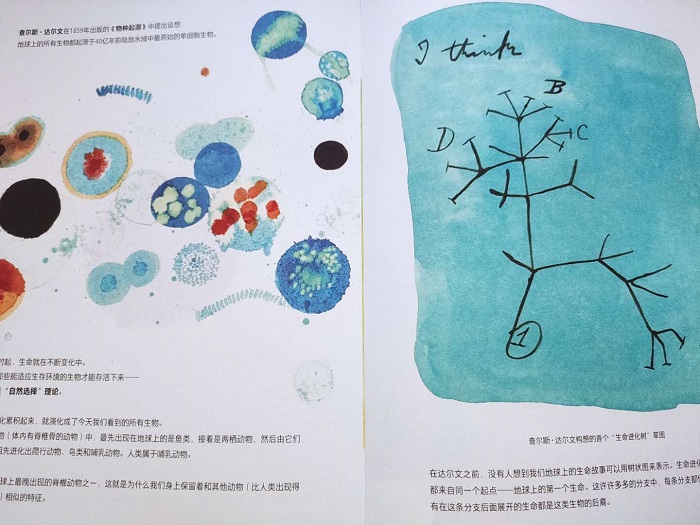 这是一本儿童科普绘本 适读年龄5-8岁。这是一本讲述物种起源、地球生命进化和万物关联的科普绘本。故事以猜谜开始——它是什么?它有鳃。它是一条鱼吗?它有肺。它是一只青蛙吗?它脚上有蹼。它是一只鸭子吗?它有尾巴。它是一只狐狸吗?不是……它马上要出生了。啊,原来它是一个宝宝。就这样,在一问一答的互动中,作者层层递进生命演化的进程,用孩子们感兴趣的方式讲述生命进化的故事,最后几页结合前面的谜面谜底,集中解释达尔文的生命进化论:地球生命起源,自然选择、生命树等。科普和艺术完美结合,来自意大利的生物学家和获得国际奖项的艺术家共同创作。