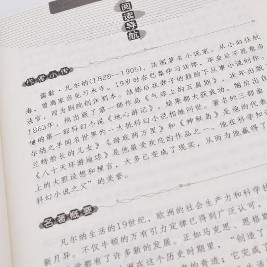儒勒·凡尔纳的小说可分两大类:一类“在未知的世界中漫游”,另一类“在已知的世界中漫游”。他的作品情景壮观、构思奇巧、想象丰富,在引人入胜的故事中蕴含着鲜明的正义感和广博的历史,地理知识。不仅可以激发读者一往无前的探险精神,培养人们的坚强意志,还可以丰富人们的科学知识,让人们感受大自然的广博和神奇。