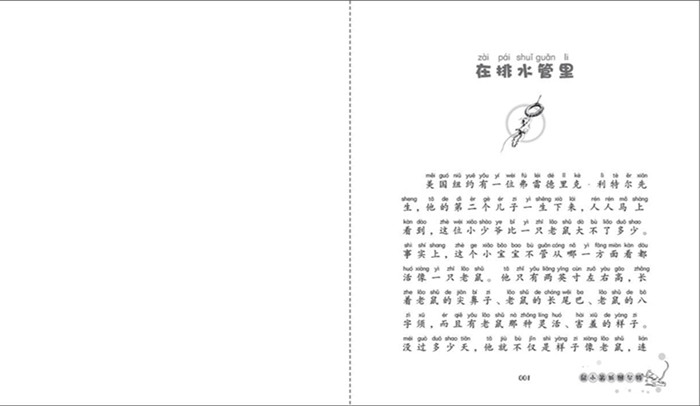 美国纽约有以为弗雷德里克·利特尔先生,她的第二个儿子一生下来,人人马上看到,这位小少爷比一只老鼠大不了多少。事实上,这个小宝宝不管从哪一方面看都活像一只老鼠。他只有两英寸左右高,长着老鼠的尖鼻子、老鼠的长尾巴、老鼠的八字须,而且有老鼠那种灵活、害羞的样子。没过多少天,他就不仅是样子像老鼠,连一举一动也像老鼠了——他头戴一顶灰帽子,手握一根小文明棍。利特尔先生和太太给他取了个名字叫斯图尔特,利特尔先生还用四个衣夹和一个香烟盒子给他做了张小床睡觉。