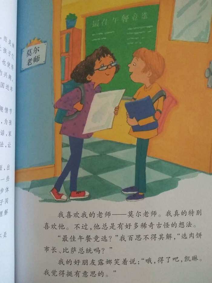 伊莲娜·梅著范晓星译黛安·帕尔米夏诺绘的《佳午餐竞选(互动版)/数学帮帮忙》讲述:莫尔老师提议举行一场佳午餐竞选,大家可以为自己喜爱的菜品进行拉票,票数多的菜品将选为春季宴会的主菜。凯琳觉得这个点子幼稚透了,但当身边的同学都积极参与进来并为自己喜爱的菜品拉票时,凯琳也不禁心动了。凯琳喜欢的菜是奶酪通心粉,她终能说服更多的同学为她的菜投票吗。春季宴会的主菜终会是什么呢。
