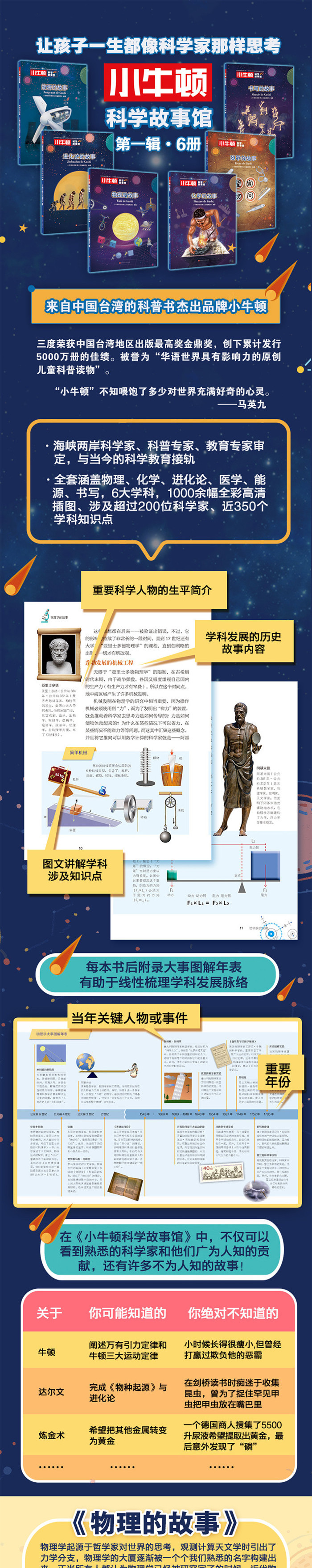 《物理的故事》主要回顾了相对论和爱因斯坦,以及百年来的物理学发展与成就,包括古典物理和现代物理之间的异同。并详细讲述物理学在推动人类科技、经济、思想文化和社会的进步中所起到的突出作用,是一本适合少年儿童阅读的普及型科普读物。