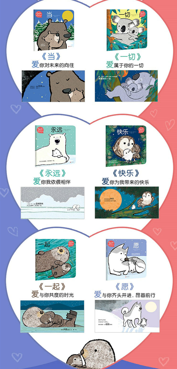 父母都会被这套温暖的绘本吸引,孩子在阅读这套书时会觉得安心,理解自己是被呵护着的。明亮大胆的用色、精心设计的图画,配上俏皮温暖的短句,将孩子成长中的喜悦与悲伤浓缩进字里行间。书架上放上这套书会令人幸福,适合亲子共读,共享温馨时刻。