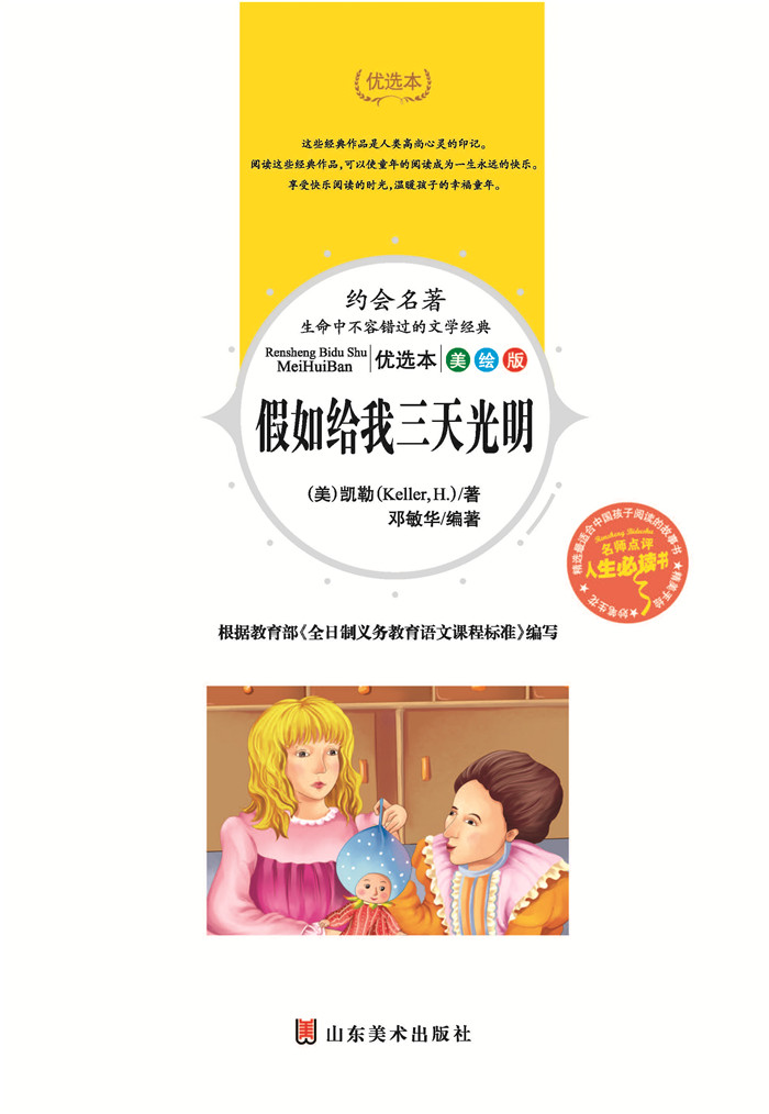 20世纪,一个独特的生命个体以其勇敢的方式震撼了世界,一个生活在黑暗中却又给人类带来光明的女性,被美国《》评选为20世纪美国十大英雄偶像。本书由海伦·凯勒的《我的生活》《走出黑暗》以及发表在美国《大西洋月刊》上的散文《假如给我三天光明》编译而成,完整系统地介绍了海伦·凯勒丰富、生动、真实而的一生。
