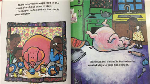 Maya's Granddaddy brings home...a huge, pink, Alaskan pig named Julius...Whether Julius is sporting white underwear with hearts, joyfully swinging Maya around to a jazz tune, or unhappily submitting to a bath, his love for his friend shines as brightly as his glossy pink skin. A warmhearted yet quirky tale of friendship, sharing, and affection." - School Library Journal, starred review