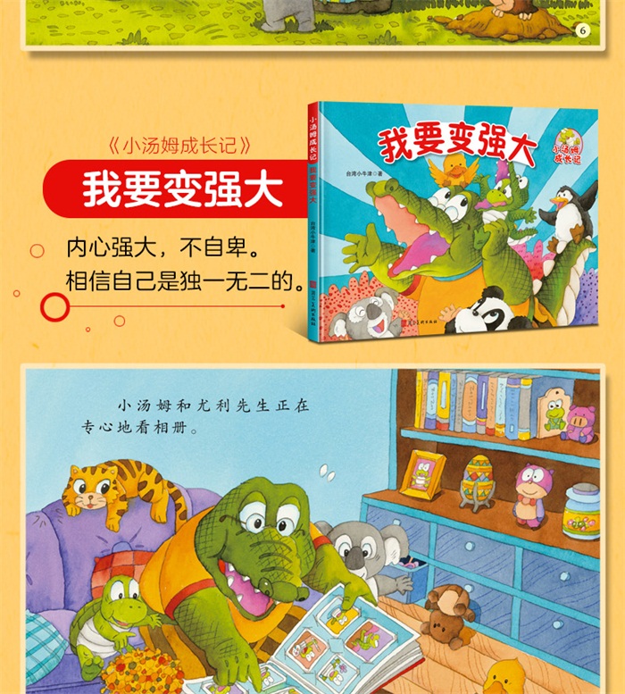本套绘本从中国台湾小牛津引进,共有4册,分别为《我要变强大》、 《我不会放弃》、《快乐做自己》、《一定会有办法》,适合3-6岁孩子阅读。每册各有一个鲜明的主题,教会孩子感受友情的快乐、乐于助人的欢欣、一起克服困难的决心,以及想变强大的信心。全书配有简单有趣的文字和精美的手绘插图,给孩子不一样的阅读感受。