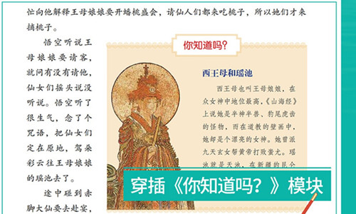 这套《画给儿童的母语 经典》,故事的选择与安排 极尽经营,文字的运用与斟 酌颇费苦心,插图的构思与 配合相得益彰,而版本的依 据讲求古老与通行。此外更 辟有专栏、取名“你知道吗” ,以简洁的文字介绍书中提 到的地名、人名、器物,或 一些比较专门的知识。凡此 都是为了使儿童读起来赏心 悦目,欣欣然、陶陶然奉作 良师、结为益友。使儿童一 书在手即兴味盎然,从盎然 的兴味中循循善诱,使之感 染文化的气息,使之邀游文 学的园林。 ——曾永义 北京大学客 座教授