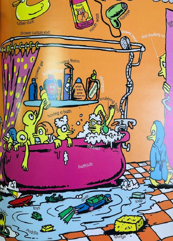 这本书前后环衬是一整个词汇表,阅读画面理解故事中的趣味时,孩子可以随时查找画面中出现的单词,理解单词的准确意义,还可以轻松点读学发音。故事中的主人公本身就是一个孩子,他在日常生活中遇到了很多有趣的事情,孩子在阅读时更能感同身受。