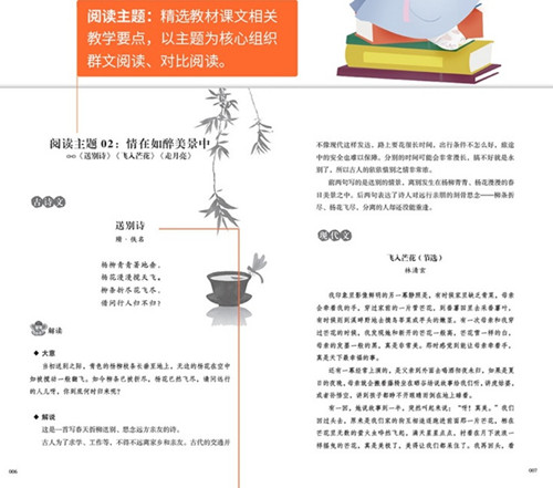 这套书针对小学不同年级的语文学习要求和课程特点,精选26-32个学习要点作为连读主题,为每个主题匹配一篇代表性课文,和一组课外的经典古诗文与现代文,形成1+2的连读任务章节,辅以相关知识点和写作小练习,从而全面、高效地达成群文阅读的学习目标。