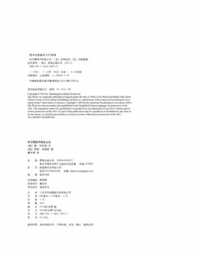 本书介绍了心理学上广泛应用的认知行为疗法,让你了解日常生活中困扰自己的坏习惯,一步步熟练运用赶走它们的5把魔法钥匙:转移注意力、让自己保持忙碌、寻找替代品、激活相关的身体部位、释放紧张情绪。