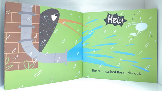 小蜘蛛正在排水管里努力地向上爬,可是,突然下起的大雨总把蜘蛛一下子冲了出去。小蜘蛛会放弃吗?