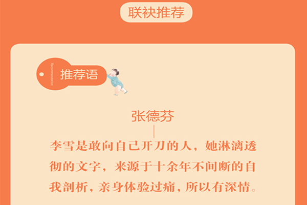 继《当我遇见一个人》后,李雪继续深入挖掘母婴关系与亲密关系的内核,通过大量真实案例,揭示了育儿过程中父母的行为对孩子的一生可能造成的影响,以及我们应该如何觉知并解决自身已然存在的问题。全书共分为六个版块,分别从母婴关系、家庭教育、自我觉知等角度,为解决家庭中的种种问题提供了方法、指明了方向。