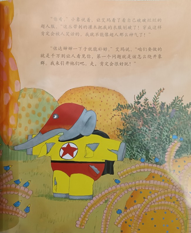 超人小飞象神气的超人服被灌木划破了!怎么办?大家看到了,一定会笑话的!为了帮助超人小飞象,艾玛带着他去找佐达婶婶补衣服,可是,一路上要遇到好多动物呢:大象、狮子、老虎、河马......他俩怎样才能不被大家发现呢?