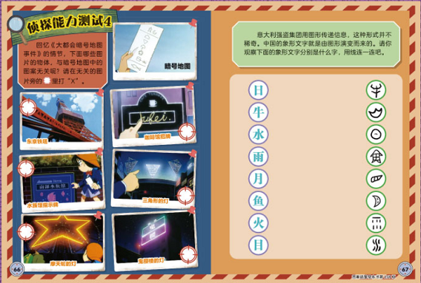 人物图鉴 侦探故事 云霄飞车谜案 侦探知识库 速度和力量之间的秘密 侦探能力测试 1 侦探故事 董事长千金绑架案 侦探知识库 光的直线传播 侦探能力测试 2 侦探故事 偶像密室谜案 侦探知识库 水与冰的转化 侦探能力测试 3 侦探故事 大都会暗号地图事件 侦探知识库 东京塔 侦探能力测试 4 侦探故事 新干线大爆炸事件 侦探知识库 便捷的高速铁路 侦探能力测试 5 侦探故事 情人节谜案 侦探知识库 适量食用甜食 侦探能力测试 6 侦探故事 每月一件礼物威胁事件 侦探知识库 外科医生和内科医生 侦探能力测试 7 侦探故事 美术馆谜案 侦探知识库 油画的保养与保存 侦探能力测试 8 侦探故事 “天下一”夜祭谜案 侦探知识库 人为什么会被晒黑 侦探能力测试 9 侦探故事 足球选手事件 侦探知识库 足球运动 侦探实验室 神奇的摩擦力 简易手工巧克力 小孔成像 显示部分信息