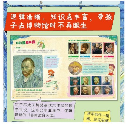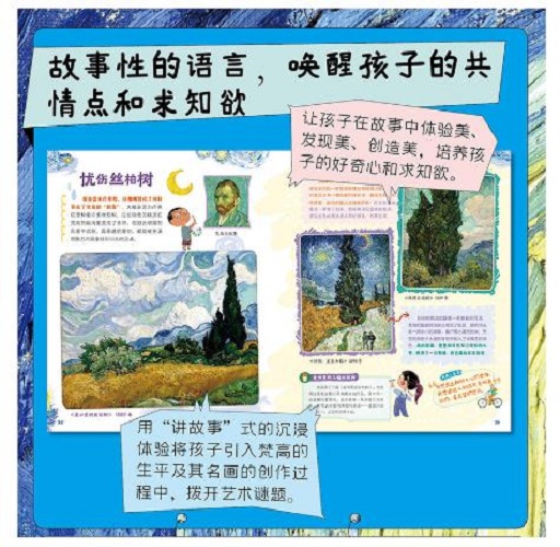 《梵高:送你一束向日葵》由高校美学博导主编,由艺术类童书作者编撰。以孩子的视角切入,抓准梵高的艺术特点,用故事性的体例,传记式的语言,充满场景感、代入感的方式将凡高一生的故事及其主要的艺术作品串联起来。全书共收录凡高来自全世界十余座博物馆的100多幅经典画作,除主要内容外,更设置“艺术史”“创作技法”“世界名画博物馆”“知名绘画流派”“艺术英语”等多板块的花絮、专题,全景展现梵高精彩的艺术人生,打破孩子与画家间的距离,引导孩子沉浸其中,体验艺术之美。