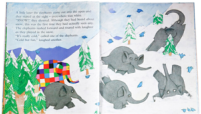 At the first hint of a chill in the air, Elmer's friends start complaining about the cold, so Elmer decides to show them what cold weather is really like. They set off for a walk up a mountain, and the higher they get, the colder it gets. A good snowball fight at the top warms them all up, but the elephants agree that compared with the freezing mountain top, their home is not really that cold at all. With his typical sense of mischief and fun, Elmer shows how hot and cold are only relative.