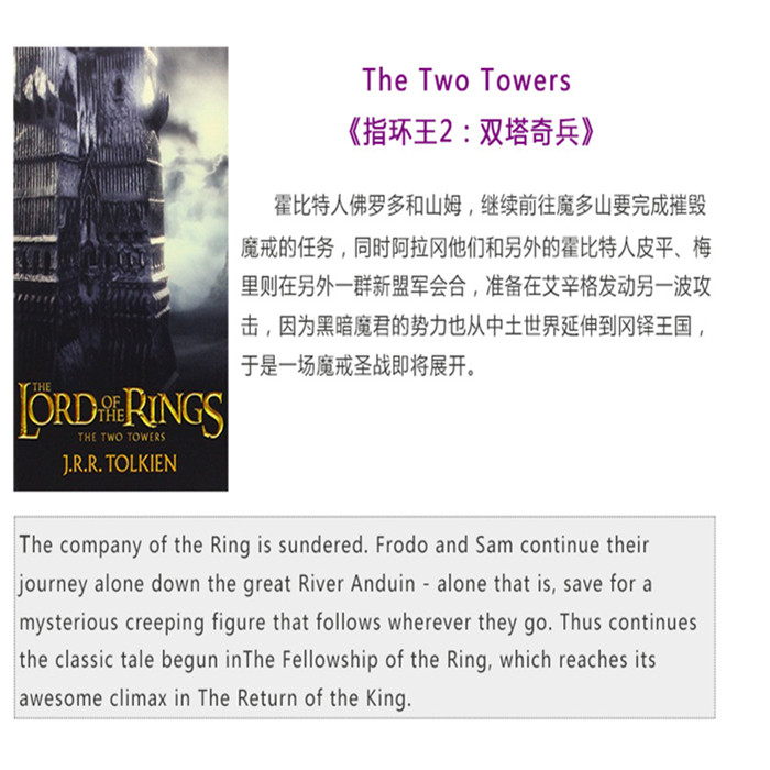 Continuing the story of The Hobbit, this is the second part of Tolkien's epic masterpiece, The Lord of the Rings, featuring an exclusive cover image from the film, the definitive text, and a detailed map of Middle-earth. Frodo and the Companions of the Ring have been beset by danger during their quest to prevent the Ruling Ring from falling into the hands of the Dark Lord by destroying it in the Cracks of Doom. They have lost the wizard, Gandalf, in the battle with an evil spirit in the Mines of Moria; and at the Falls of Rauros, Boromir, seduced by the power of the Ring, tried to seize it by force. While Frodo and Sam made their escape the rest of the company were attacked by Orcs. Now they continue their journey alone down the great River Anduin - alone, that is, save for the mysterious creeping figure that follows wherever they go. To celebrate the release of the first of Peter Jackson's two-part film adaptation of The Hobbit, THE HOBBIT: AN UNEXPECTED JOURNEY, this second part of The Lord of the Rings is available for a limited time with an exclusive cover image from Peter Jackson's award-winning trilogy.