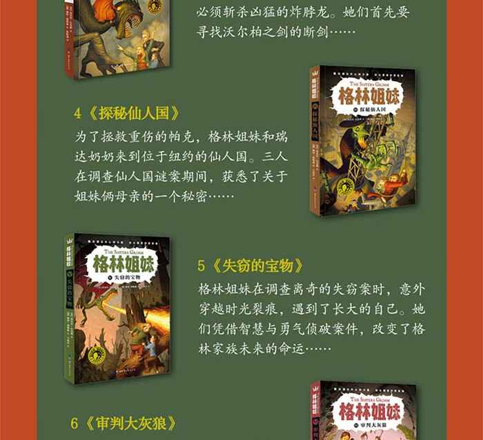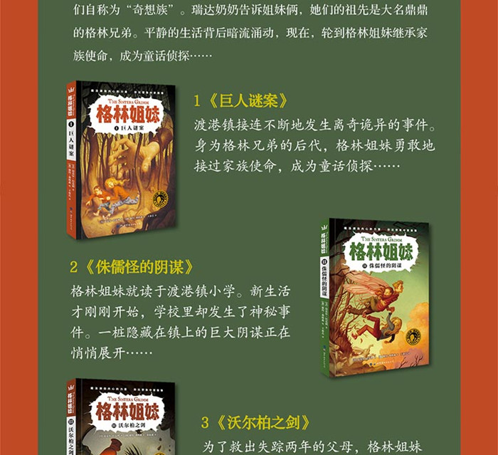 这是一本精彩绝伦的儿童幻想小说。主人公萨布丽娜和达夫妮在父母离奇失踪后,被送往渡港镇的瑞达奶奶家生活。谁知平凡的小镇上生活着童话世界中的人物——白雪公主、侏儒怪、美女与野兽、红心王后……瑞达奶奶告诉姐妹俩,她们的祖先是大名鼎鼎的格林兄弟(威廉·格林和雅各布·格林),而童话和经典故事里记载的都是真实事件,是活生生的历史,这些童话里的人物自称为“奇想族”。格林家的职责是守护整个渡港镇,调查一切不合常规的事情。平静的生活背后暗流涌动,一桩桩扑朔迷离的案件紧密交织。现在,轮到格林姐妹继承家族使命,成为童话侦探。姐妹俩知难而进,踏上了侦探冒险之路。 本册内容简介: 格林姐妹着手侦破的*个案件是农舍倒塌案。在调查起步阶段,瑞达奶奶却被巨人抓走了。离奇诡异的事件接连不断。姐妹俩先后遭到猪警长的追捕和仙子帕克的攻击……她们能够找出谜案的真相,救回瑞达奶奶吗?