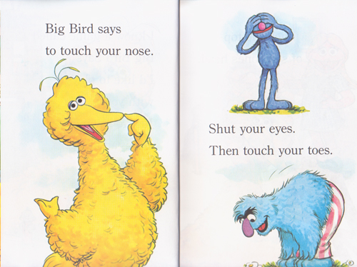 Illus. in full color. Funny commands such as "Quack like a duck" enliven Big Bird's rhyming Sesame Street version of Simon Says.