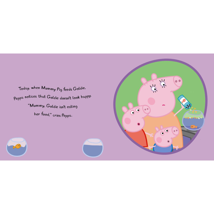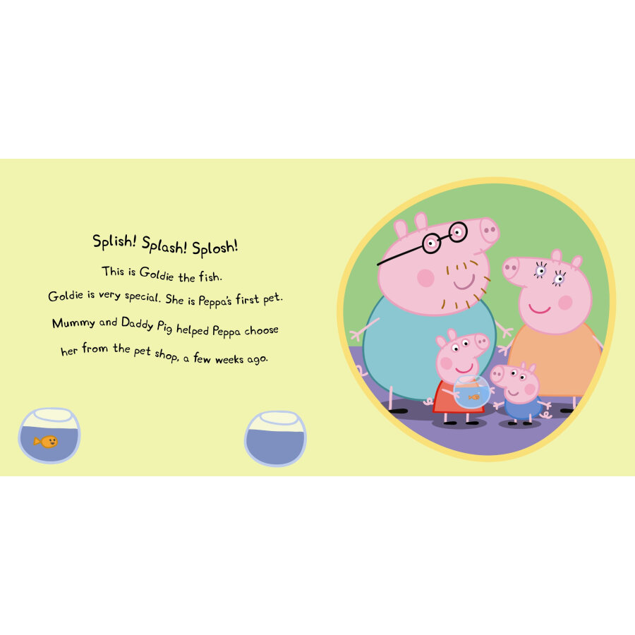 Splish, splash! Oh dear, Peppa Pig's pet fish, Goldie, isn't well. Join Peppa, George and Mummy Pig in this delightful board storybook, based on the number one and award-winning preschool children's TV show on Channel 5 and Nickelodeon, as they take an exciting bus ride to the vet to find out why Goldie isn't eating her food. Be sure to look out for the extra little picture story running throughout the book. Every Peppa fan from 2-5 years old will enjoy this 'first experience' story about caring for your pet, and they will love looking at the colourful pictures and joining in the adventure with Peppa and George, and their friends. This is a story perfect for sharing at school or for snuggling up at bedtime!