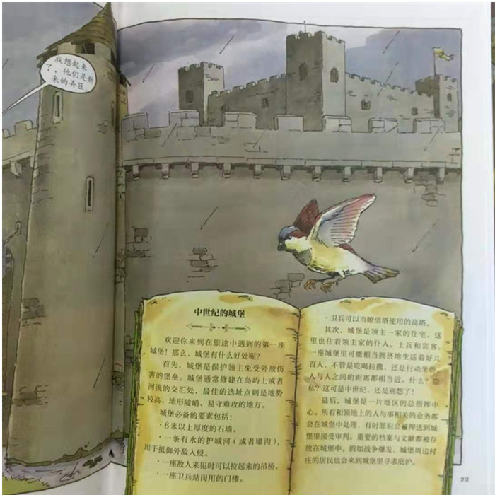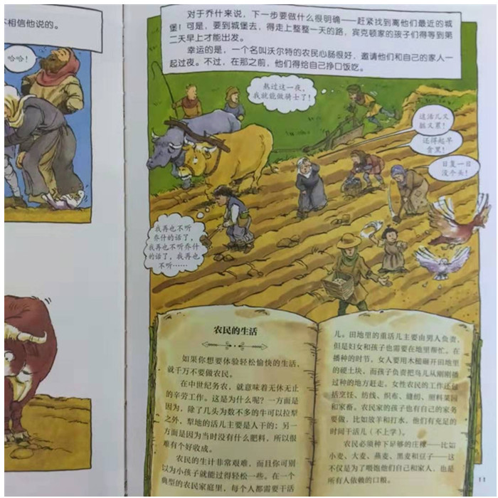 这套“神奇时光探险之旅”看漫画学历史的书,正是小朋友学习历史的敲门砖。在书中,宾克顿家的三个孩子误闯神奇时光旅行社,翻阅旅行社老板佩蒂格鲁的独家旅游指南,进行时光旅行,在惊险有趣的冒险中畅游了中世纪、古埃及、古希腊、古代中国、维京时代和冰河世纪。有趣的是,故事的铺陈很有技巧地将历史隐藏其中,对于觉得学习历史太沉重的孩子来说,完全不着历史痕迹。我建议,孩子们在看这一系列童书时,和书中一派轻松的故事情节叙述一样轻松阅读,跟着宾克顿家的孩子们去冒险,去看古埃及人的生活,尝尝汉朝时的面条,参加古代奥林匹克运动会,或是经历一场冰河世纪的探险。